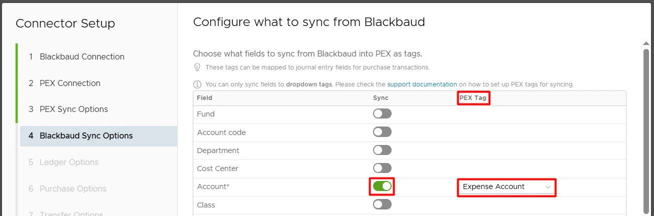 - In the PEX Tag dropdown lists in connector setup steps.