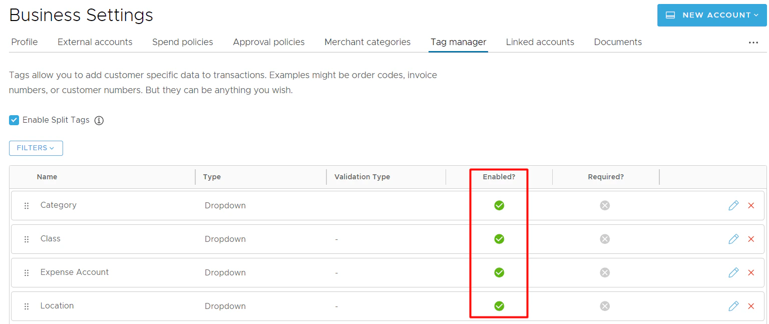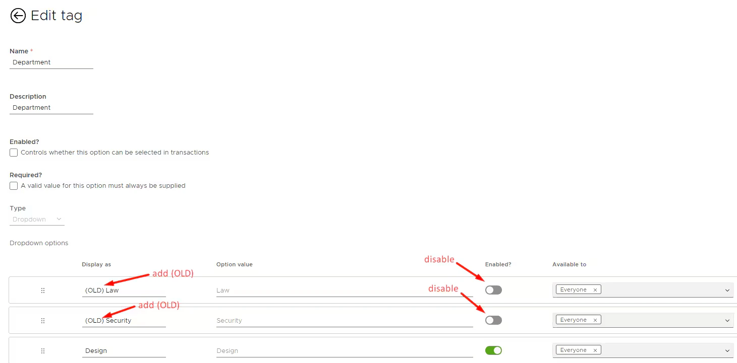 - You can disable any Expense Category in Tag Manager that you do not want visible to users for tagging.