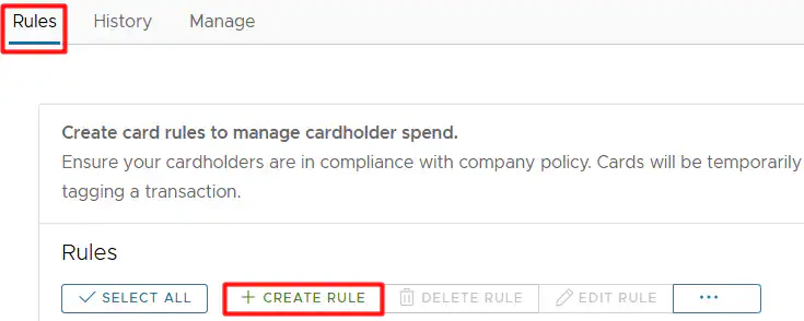 - Create a card rule by clicking ”+ Create rule”.