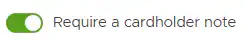 - Enable/disable “Require a cardholder note” toggle.
