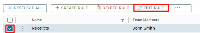 - In the table, check the card rule you want to edit.