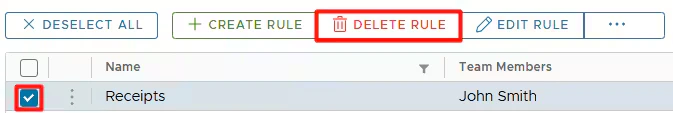 - In the table, check the card rule you want to delete.
