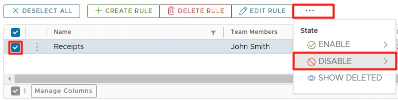 - Uncheck “Rule deleted”.
