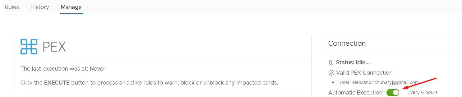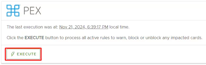 - If you do not run a manual execution on the 15th day, the card will not be blocked that day.