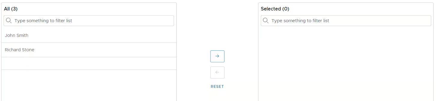 - To remove a pre-selected cardholder from the list, click on the cardholder name and the left-arrow button. The cardholder will disappear from the “Rule members” list and appear again in the “All cardholders” list.