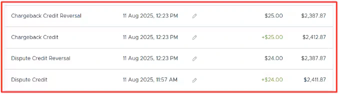 - The cardholder does not add a receipt to either transaction.