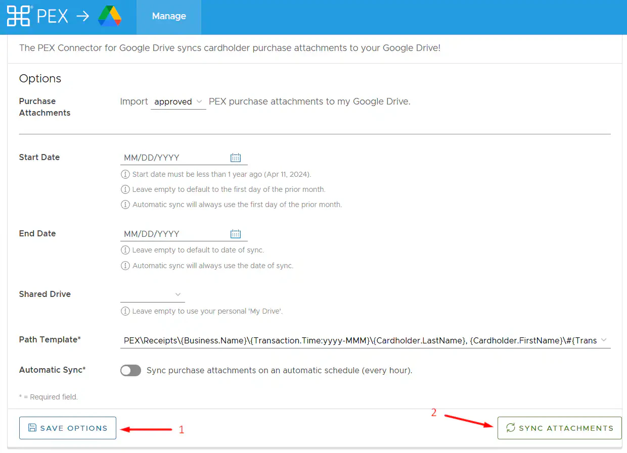 - Automatic Sync - Enable if you want to sync purchase attachments on an automatic schedule (every hour).