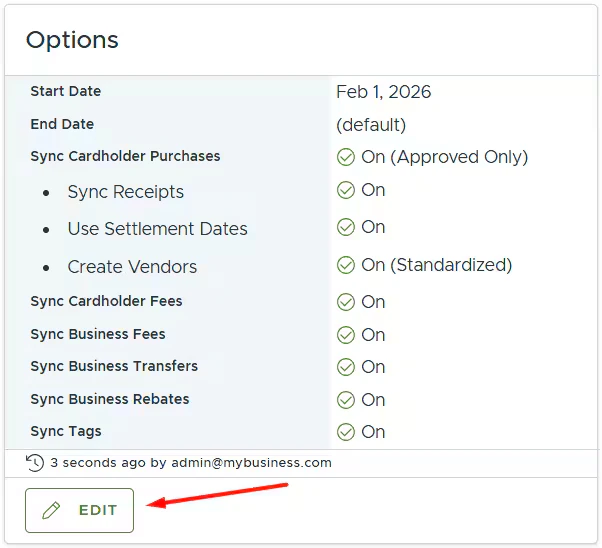 • Enabled: Transactions/tag options sync automatically every 24 hours.