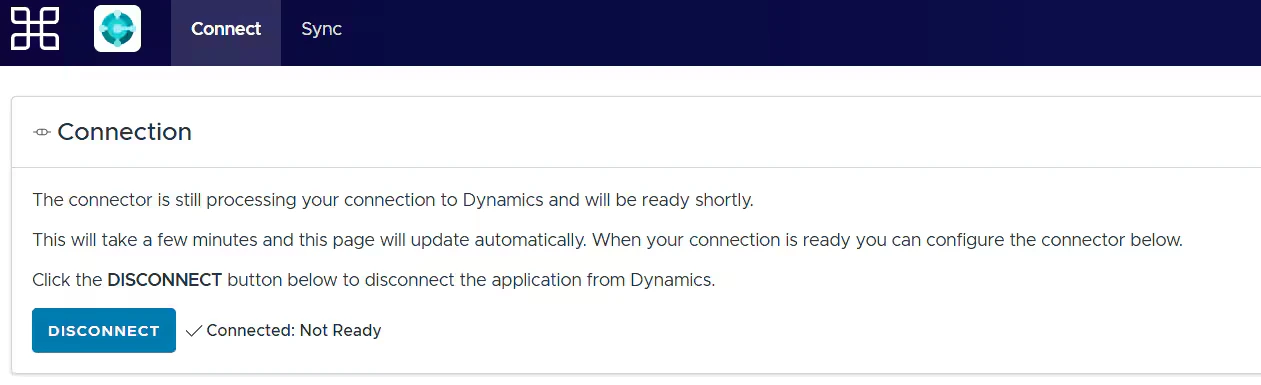 PEX processes the connection. Status shows Connected: Not Ready for a few minutes,