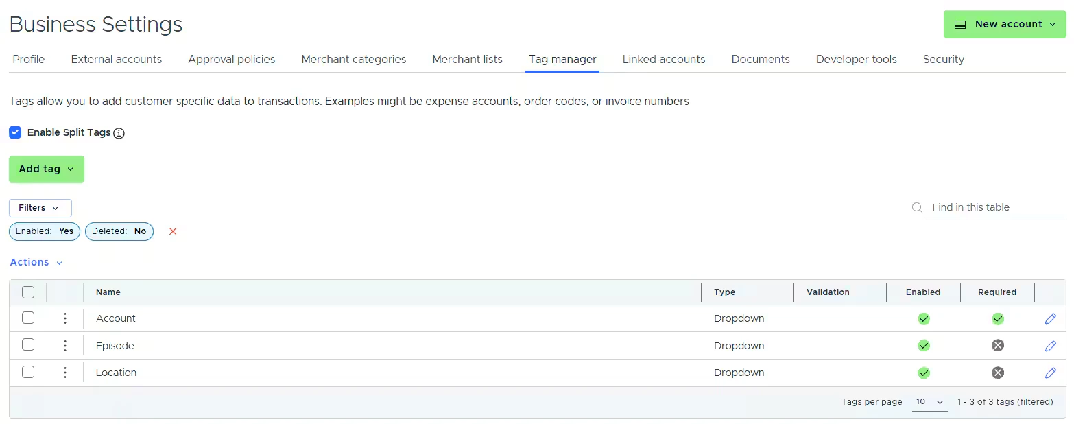 • If the “Required” checkbox is checked, cardholders must tag a transaction with it.