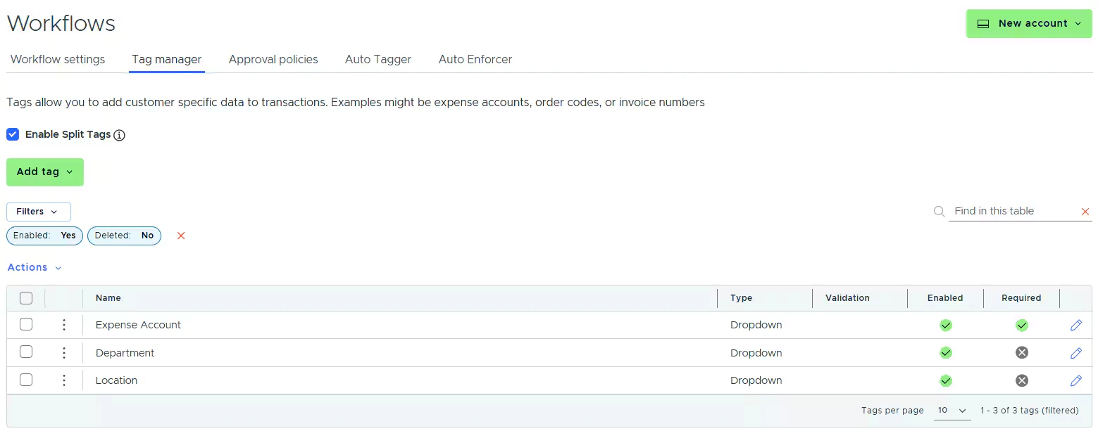 • If the Required checkbox is checked, cardholders must tag a transaction with it.