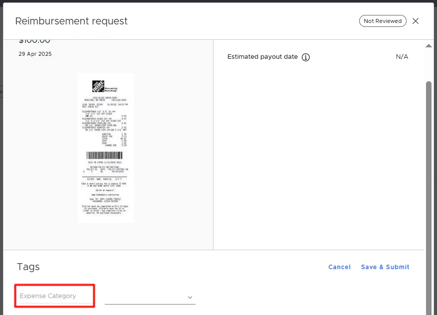 On the PEX reimbursement details screen, so you and your Cardholders can tag reimbursements.Admin view