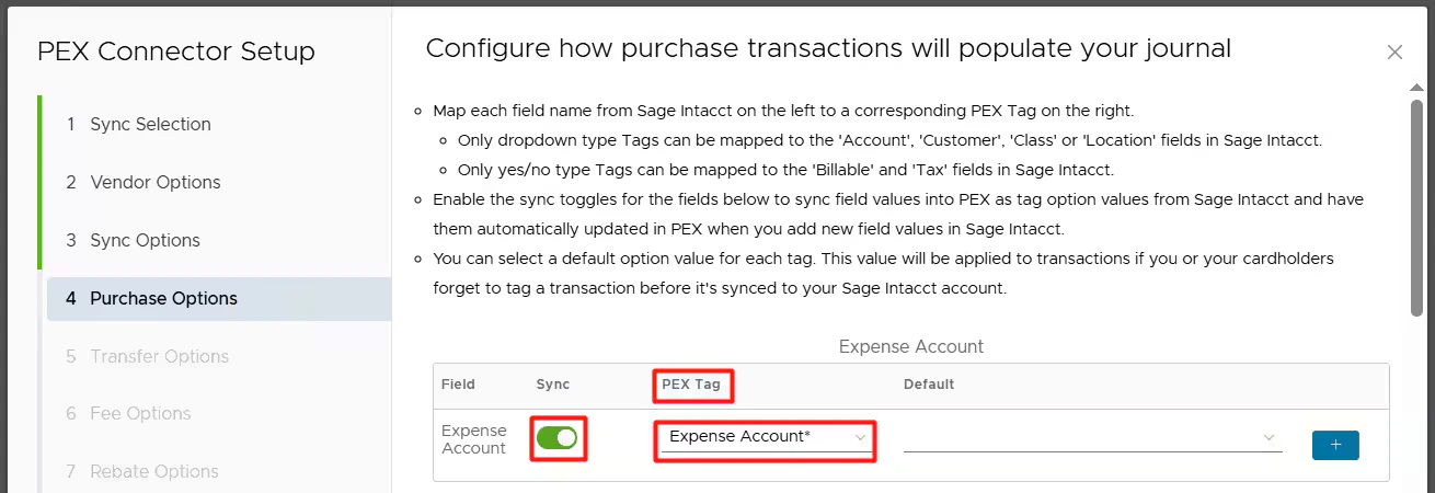 Create one tag for each Sage Intacct field mapped to a PEX tag (like Class, Project, etc.) following the same steps above.