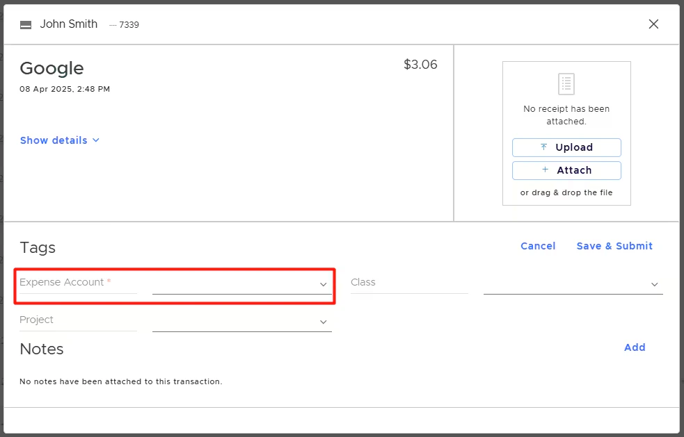 - On the PEX transaction details screen, so you and your Cardholders can tag transactions.
