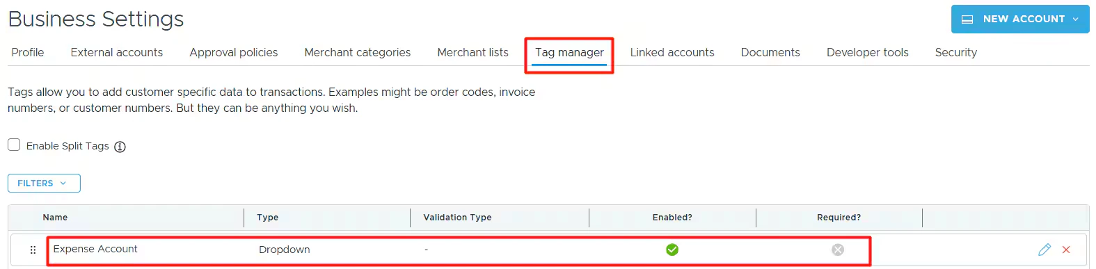 - If the “Required” checkbox is checked, cardholders must tag a transaction with it.