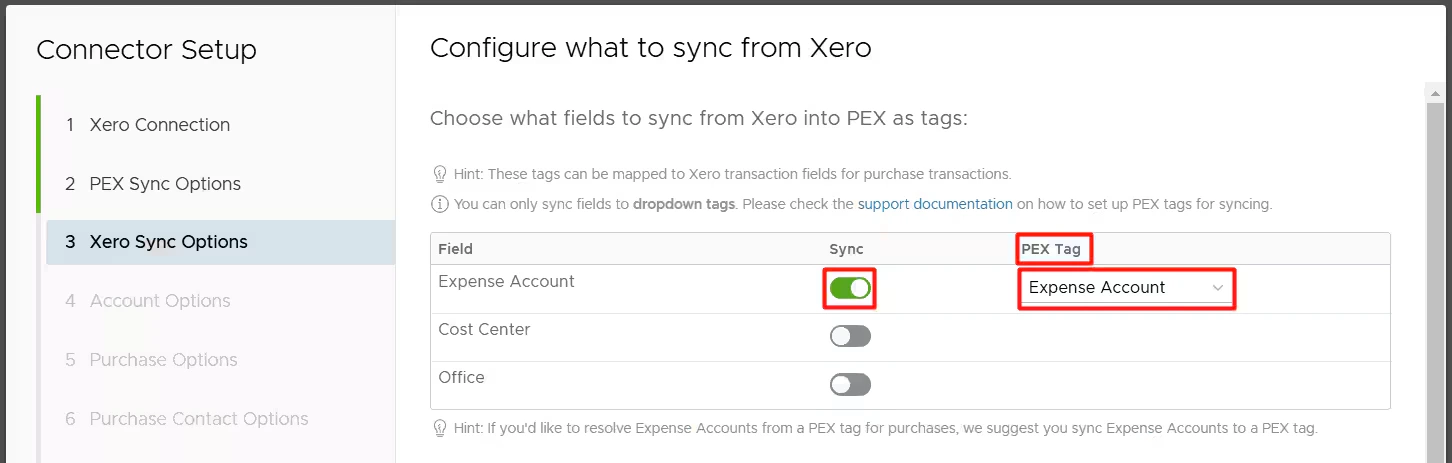 Create one tag for each Xero field mapped to a PEX tag (like Expense Type, Office, etc.) following the same steps above.Once the tags are set up, you will also see them: