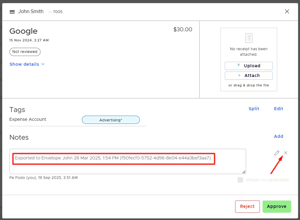 - It either has a receipt attached, a tag added, or both; otherwise, it wouldn’t have a “Not Reviewed” status.
