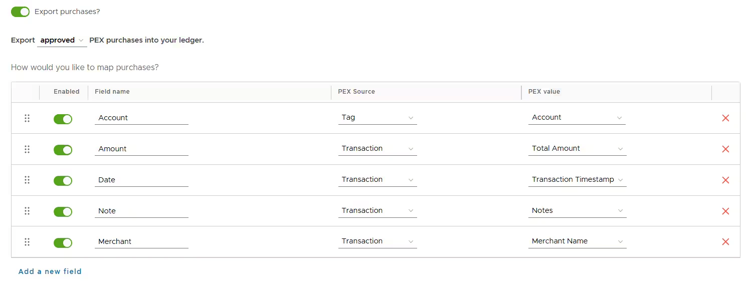 You can export purchases to MIP.- Enable “Export purchases?” to successfully export PEX purchases, which will update the toggle from grey to green.
