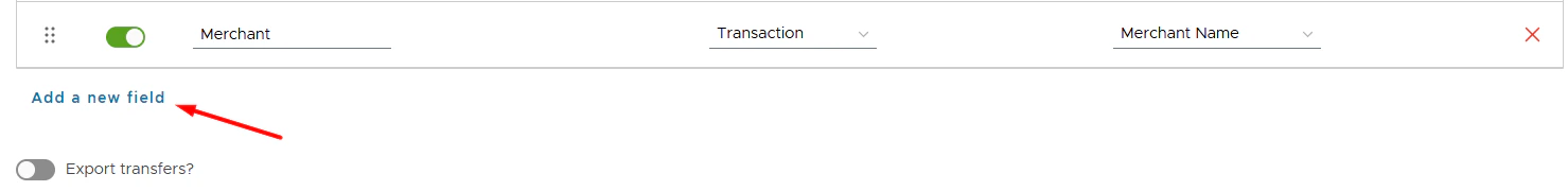 • As soon as you remove a field in one section, it is auto removed in all sections (Export purchases?, Export transfers?, Export bill payments?, Export fees?).