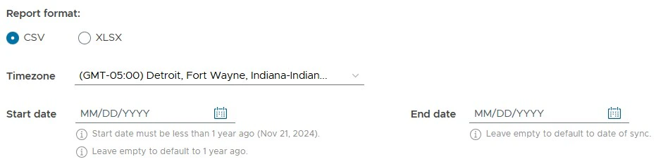 • If you selected a small date range with a low number of transactions, the export file should be ready for download in less than a minute. If the date range contains a large number of transactions, it may take a few minutes. Simply refresh the screen to get the latest update.