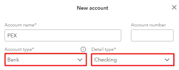 Set up the PEX “bank account” in QuickBooks Online