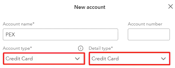 Enter a descriptive name for the new account. We suggest “PEX”, “PEX Corporate Card”, “PEX Transactions”, or similar.If your PEX account is prepaid: