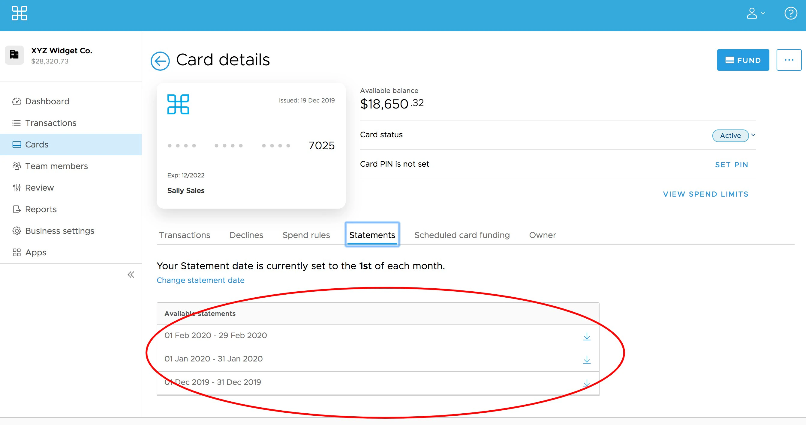 Note:If you are an admin and are not able to see statements for a given cardholder, please check your permissions with your organization’s primary administrator. You must have the “View Card Usage” permission enabled to be able to view cardholder statements.