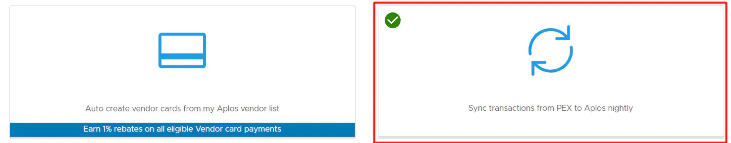 There are currently two options for how you can connect PEX with Aplos. We recommend as many as possible to make your reconciliation experience seamless.- Auto create vendor cards from my Aplos contact list.