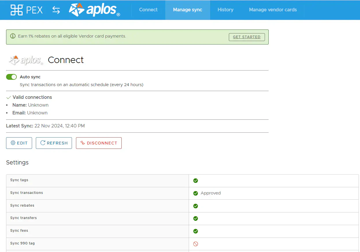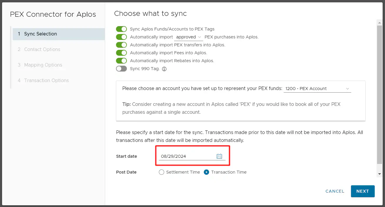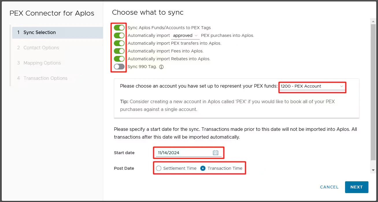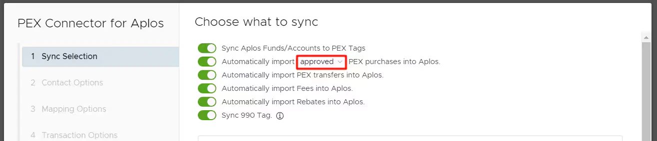 - You can choose to sync all PEX transactions (regardless of approval status) or just approved (recommended).