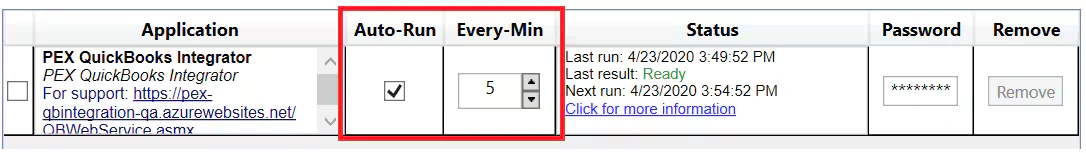 Auto Sync To auto-sync, check Auto-Run and set an interval in minutes. Note that auto-sync will only run if the machine is turned on and the Web Connector window is open.