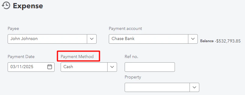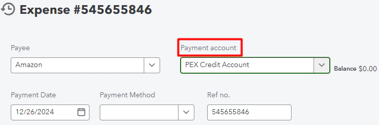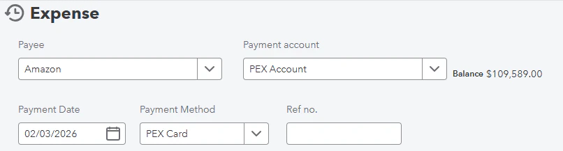 - This will serve as the Payment Method for all PEX reimbursements in QuickBooks.