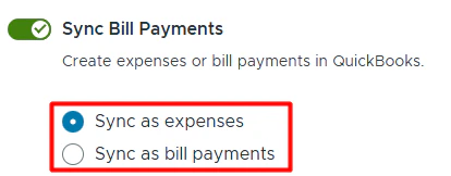 Configure your bill sync from PEX to QuickBooks. PEX can sync bill payments as expenses or as bill payments.