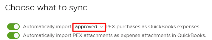 - Enable this option to import PEX receipts as expense attachments in QuickBooks.
