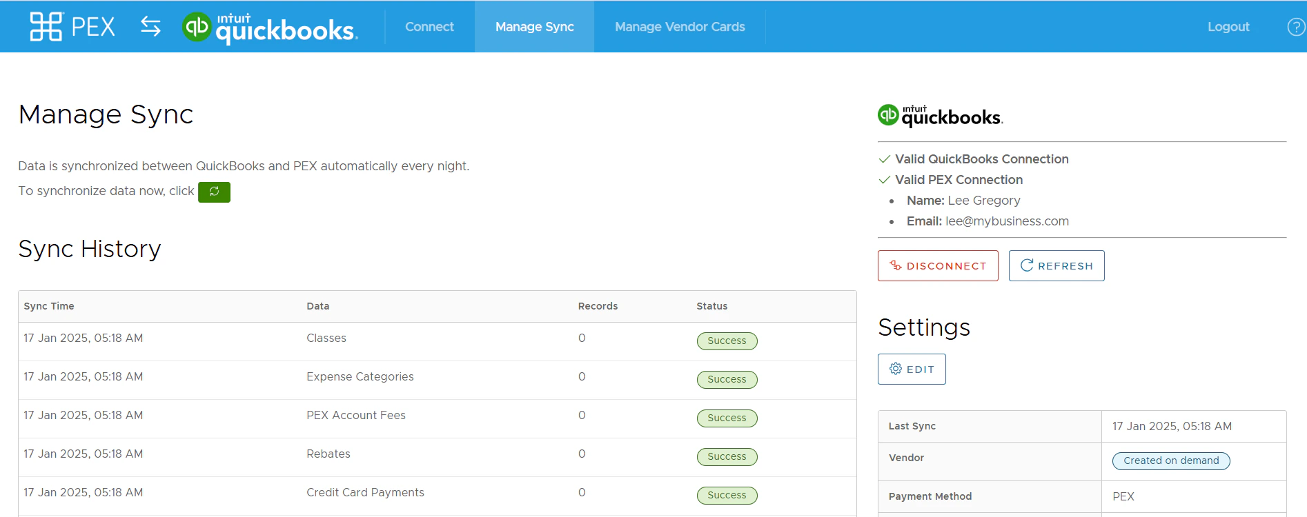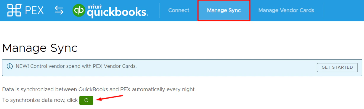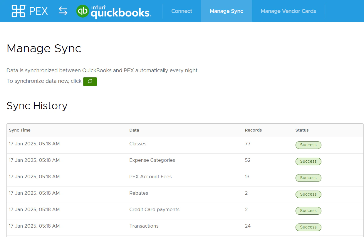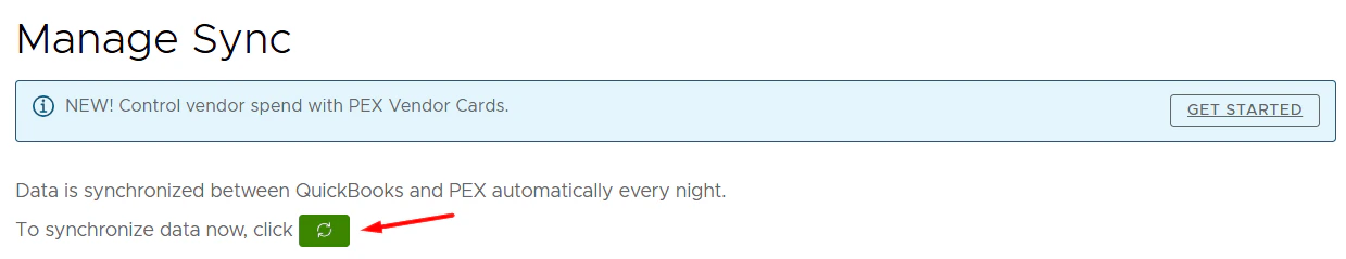 - Run a manual sync between PEX and QuickBooks by clicking on the green sync button.