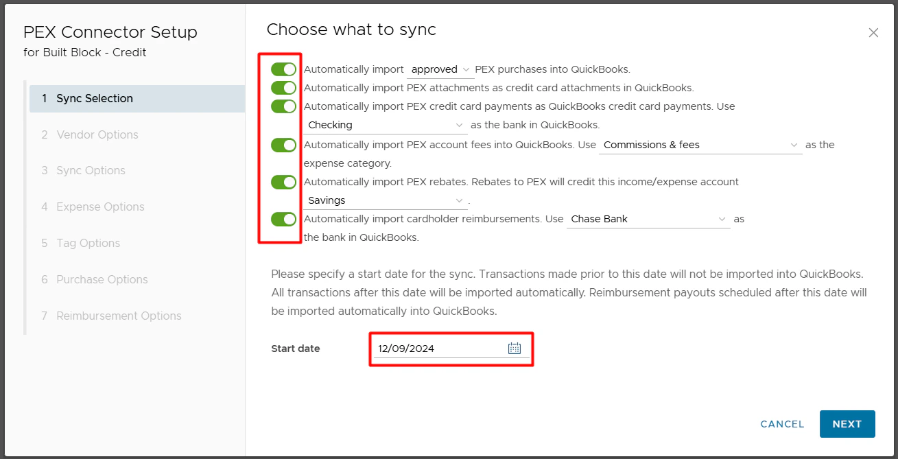 - You can choose to sync all PEX transactions (regardless of approval status) or just approved (recommended).