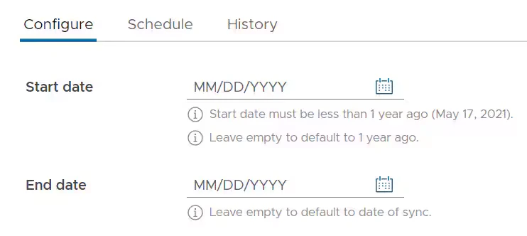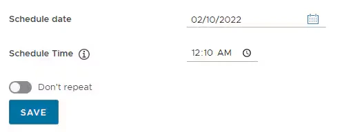 One time sync: To run a one time report, select a date and time to run the report and press ‘Save’.