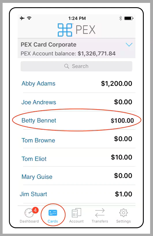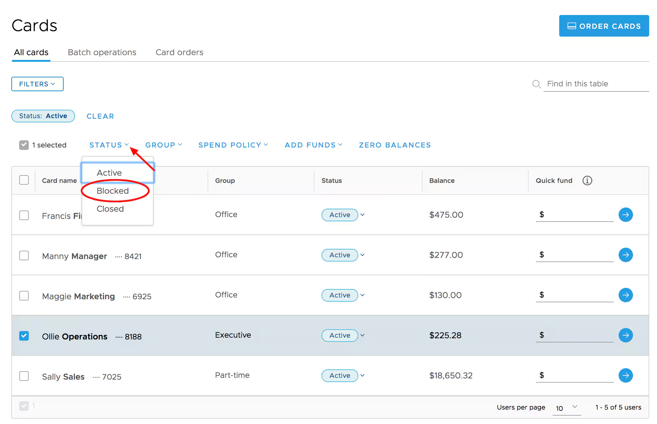 - You can also click the checkbox next to the individual cardholder, or select multiple cards on the cards list (to perform a bulk action)