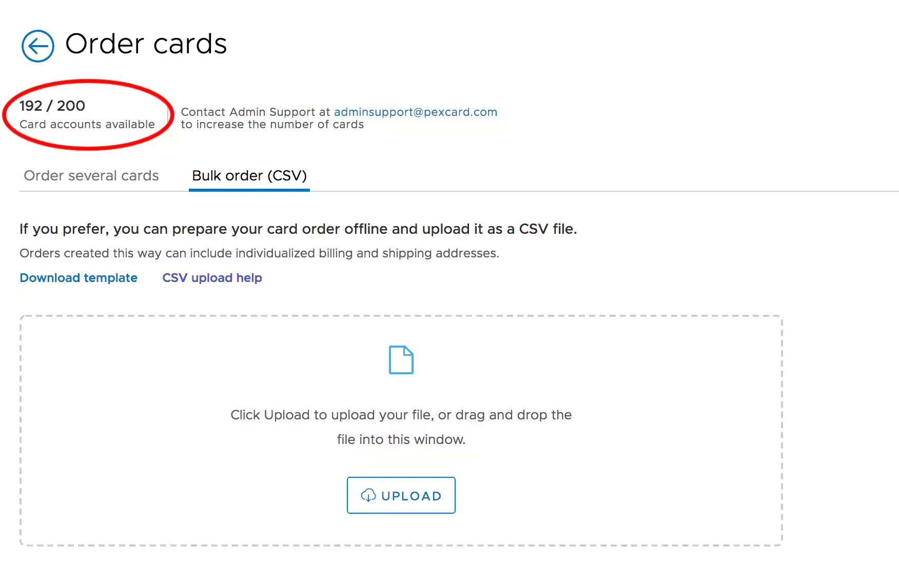 - To request an increase in the number of cards, contact Admin Support at adminsupport@pexcard.com