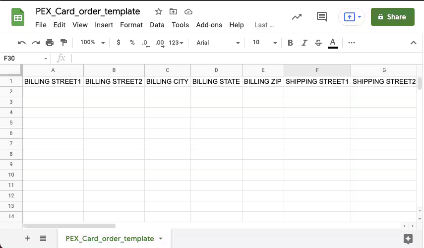 This table outlines the structure and rules for each column in the PEX Vendor Card Order CSV template. Adhering to these specifications is crucial for successful uploads. All columns are required unless otherwise noted.| Column | Field name (CSV header) | Required? | Description | Rules and constraints |
