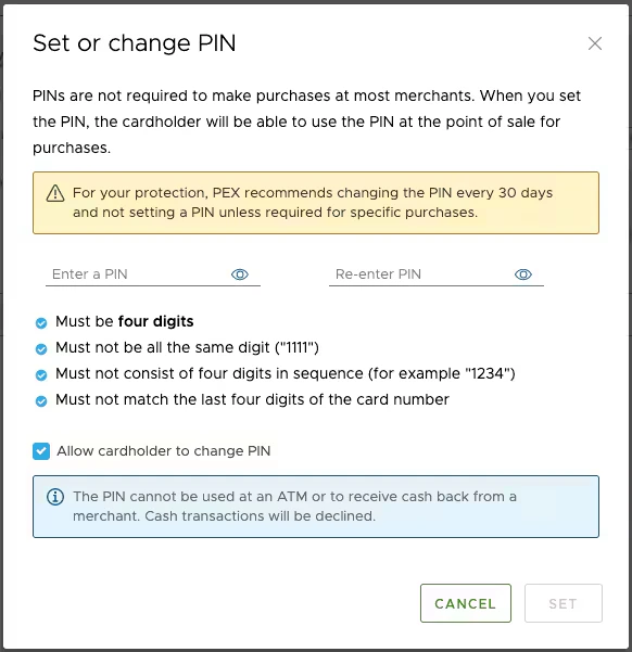 How to set or change the cardholder PIN