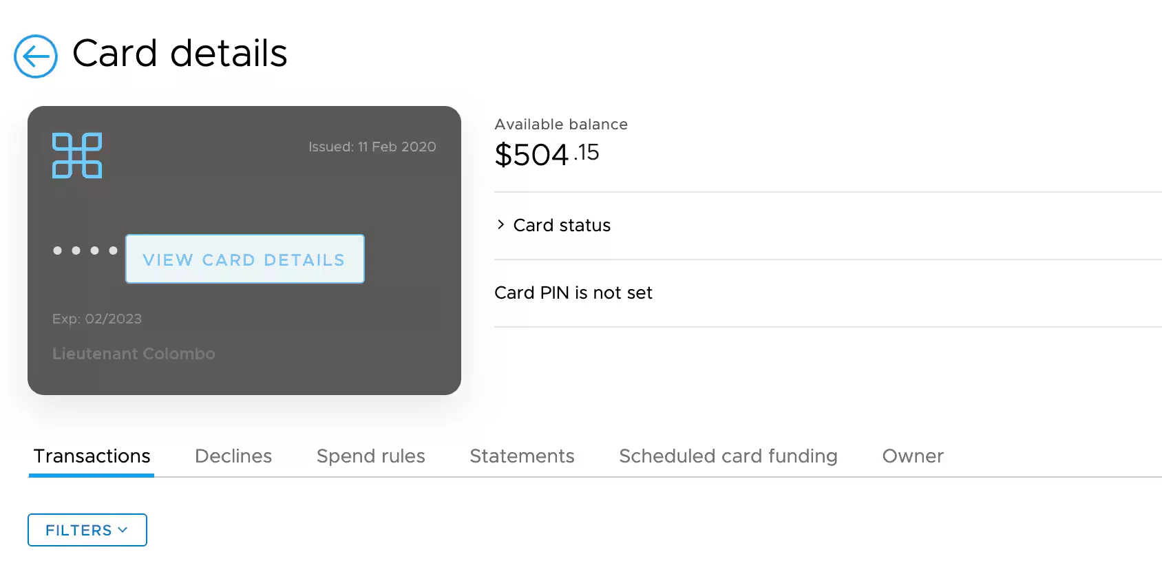 - Card Details Viewing: Allow (admins can change this setting on the dashboard under Card Details)