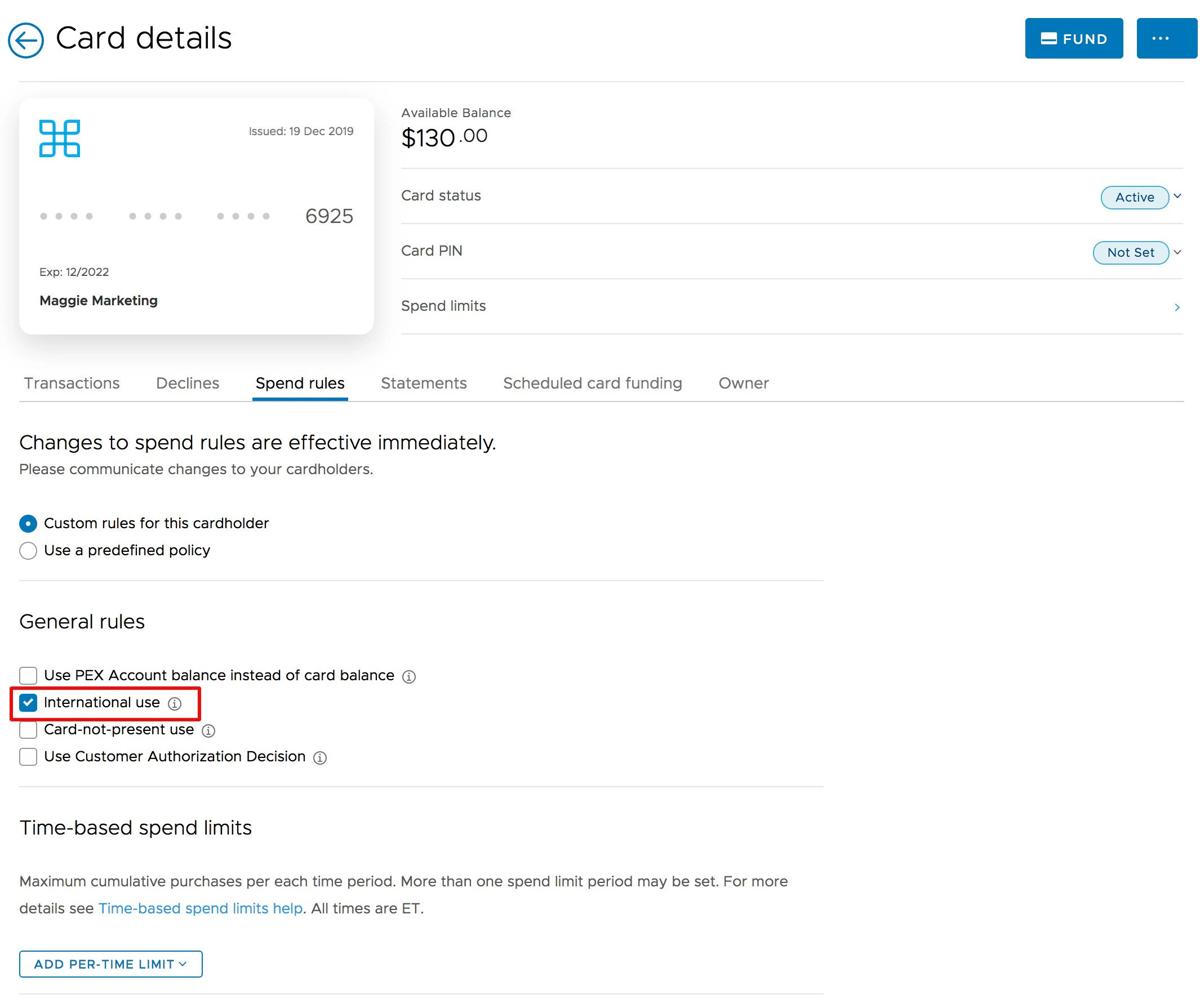 How to Enable or Disable International Use of PEX Cards