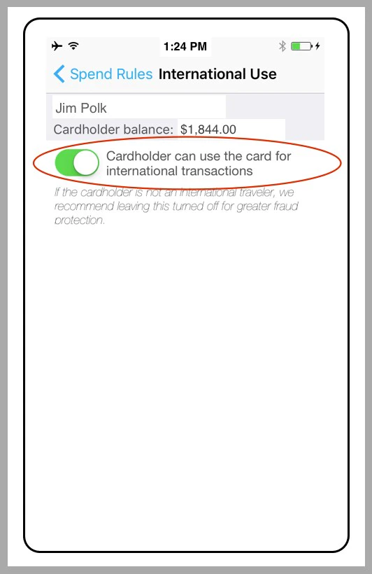 How to Enable or Disable International Spend (Mobile App)