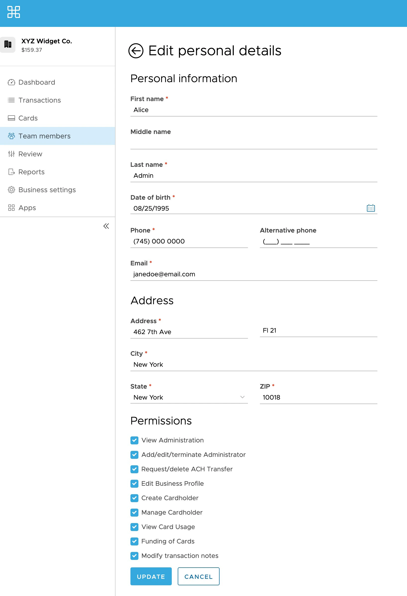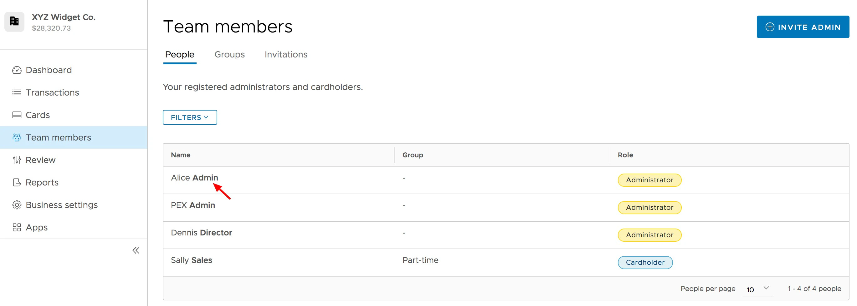 Note:PEX is not authorized to update administrator permissions. Partial administrators must speak to an administrator with full privileges to update their permissions for them.