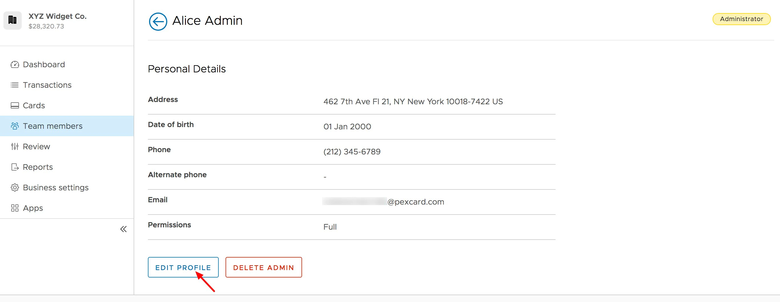 Click on the Team Member’s administrator profile to open the profile page