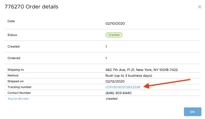Administrators can find a shipment tracking number for card orders on the “Card order history” page in the Administrator Site. Card tracking information is typically available 4 business days after the card order is placed, not including the day the card order was submitted. Tracking is provided for the following shipping methods: