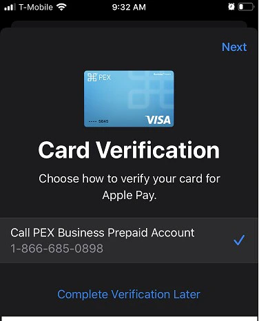 Once the Card verification is successfully completed, your PEX card is added to a digital wallet and ready to use.