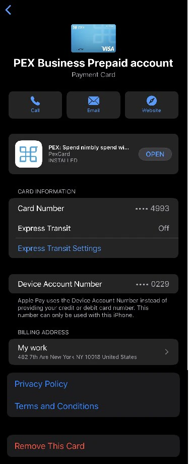 Important:You must have a registered PEX cardholder account to add your card to a digital wallet. To set up a PEX cardholder account, please visit https://dashboard.pexcard.com/registration