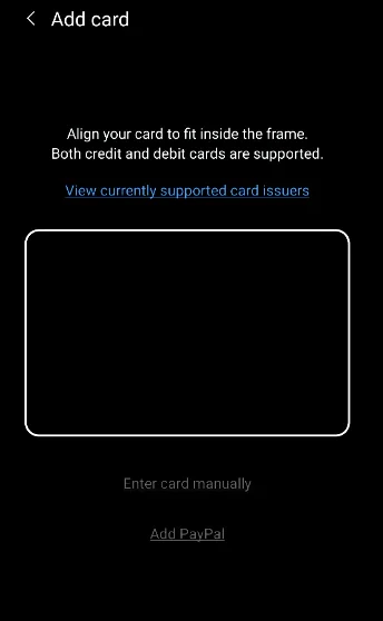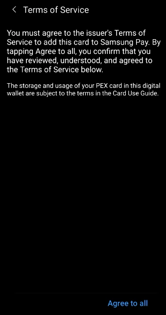 Adding a PEX card to Samsung Pay