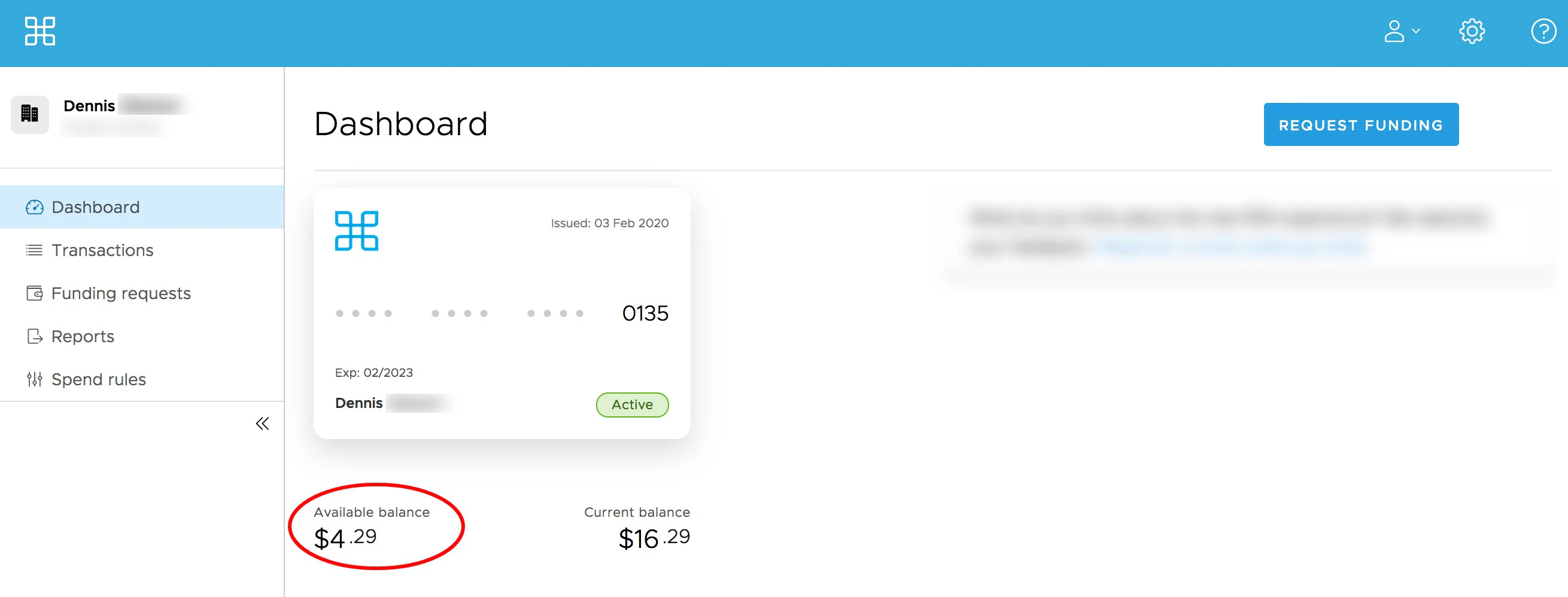 - Note: the “Available balance” is the amount you are able to spend. This balance may differ from the “Current Balance” due to pending transactions that have not yet settled. To see pending transactions, click on the Transactions tab.
